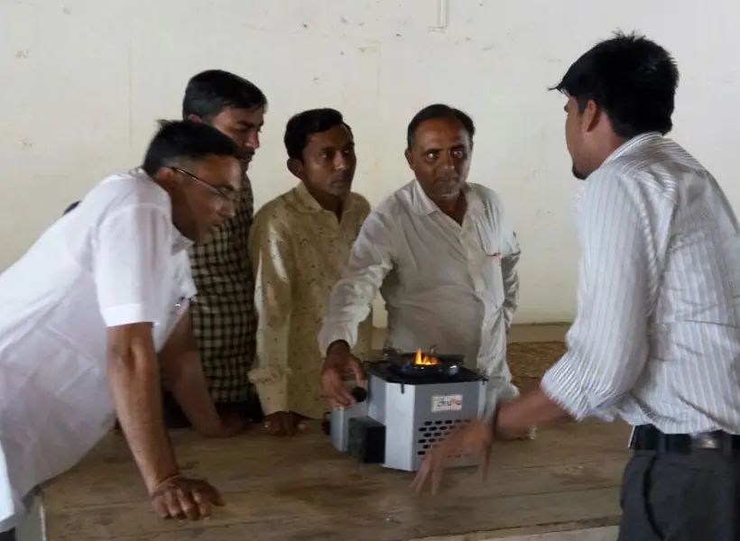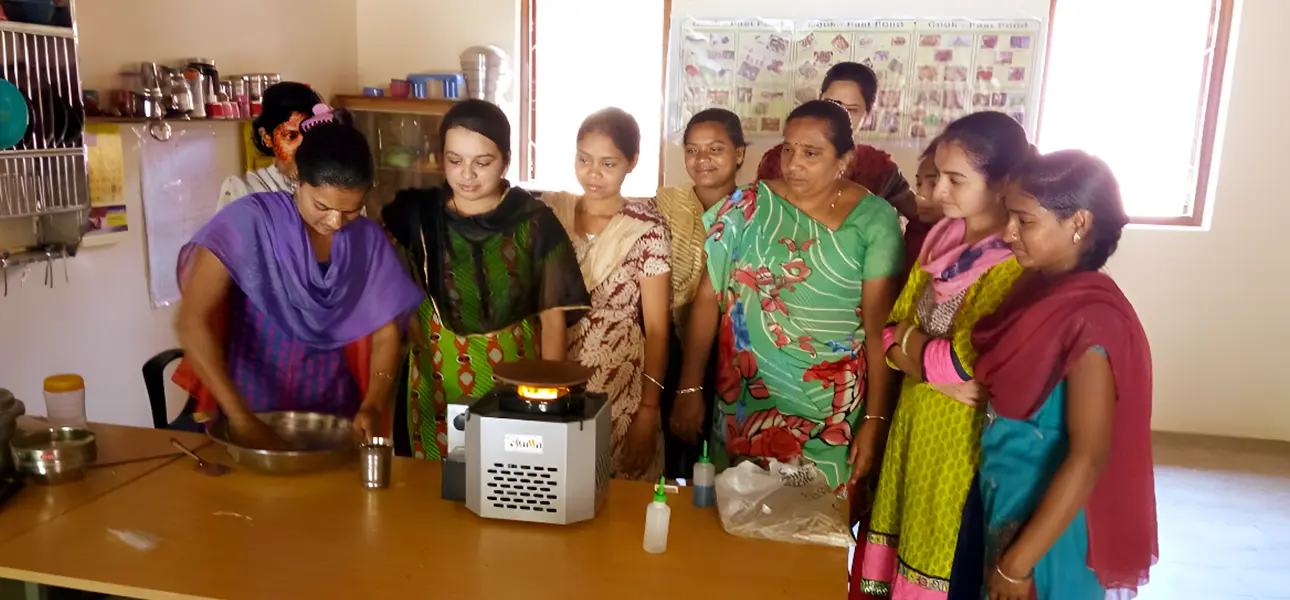 ICS – Improved Cookstove. This cookstove replaces traditional chullas with health benefits and impacts the environment with CO2 & firewood reduction. It also saves on cooking time and has a high thermal efficiency (i.e. fuel input and heat output).