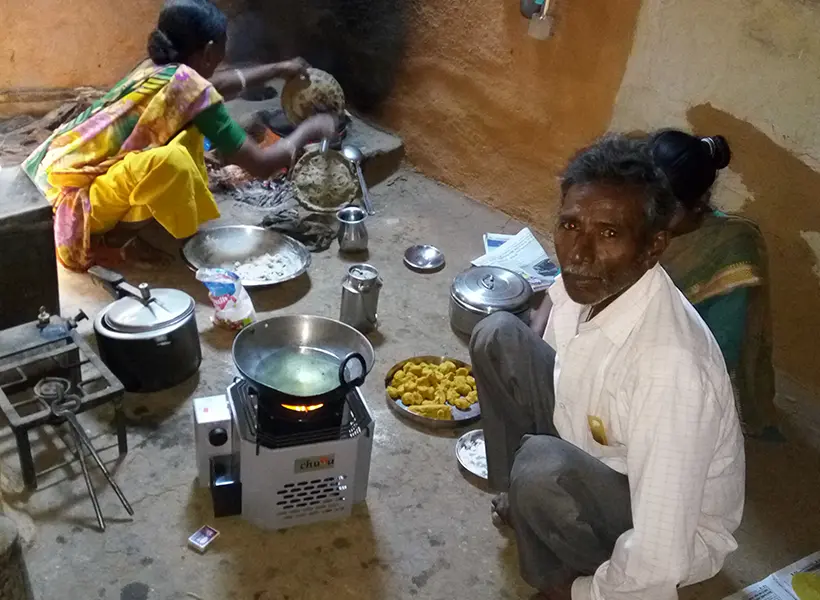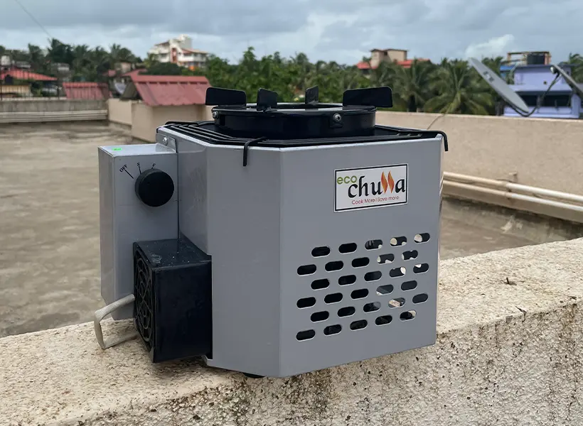 ICS – Improved Cookstove. This cookstove replaces traditional chullas with health benefits and impacts the environment with CO2 & firewood reduction. It also saves on cooking time and has a high thermal efficiency (i.e. fuel input and heat output).